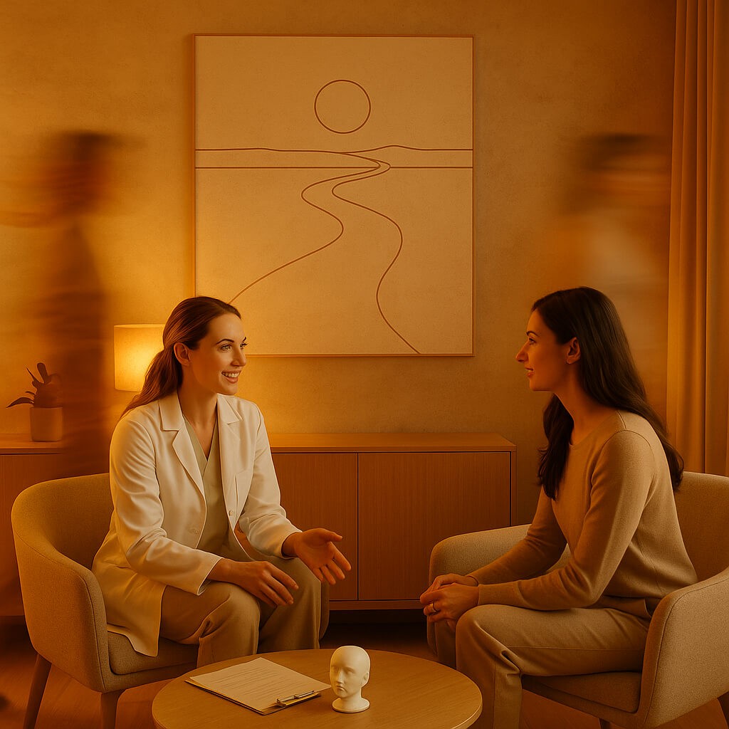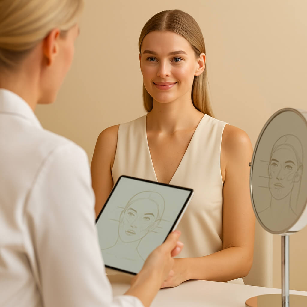 Dirigée par un médecin spécialisé en médecine esthétique, notre consultation se produit dans un environnement discret, accueillant et sans hâte. Il est temps d'effectuer une évaluation clinique complète de votre peau et de votre structure faciale, d'analyser vos proportions et, ensemble, de discuter de vos objectifs esthétiques de manière réaliste et transparente. De cette conversation, nous élaborons un plan de traitement à 100% personnalisé - que ce soit préventif, correcteur ou entretien. Nous expliquons chaque détail sur les techniques et produits les plus appropriés pour votre cas, en garantissant une sécurité totale et, si vous le souhaitez et indiqué, offrant la commodité de l'exécution de la première application le même jour.